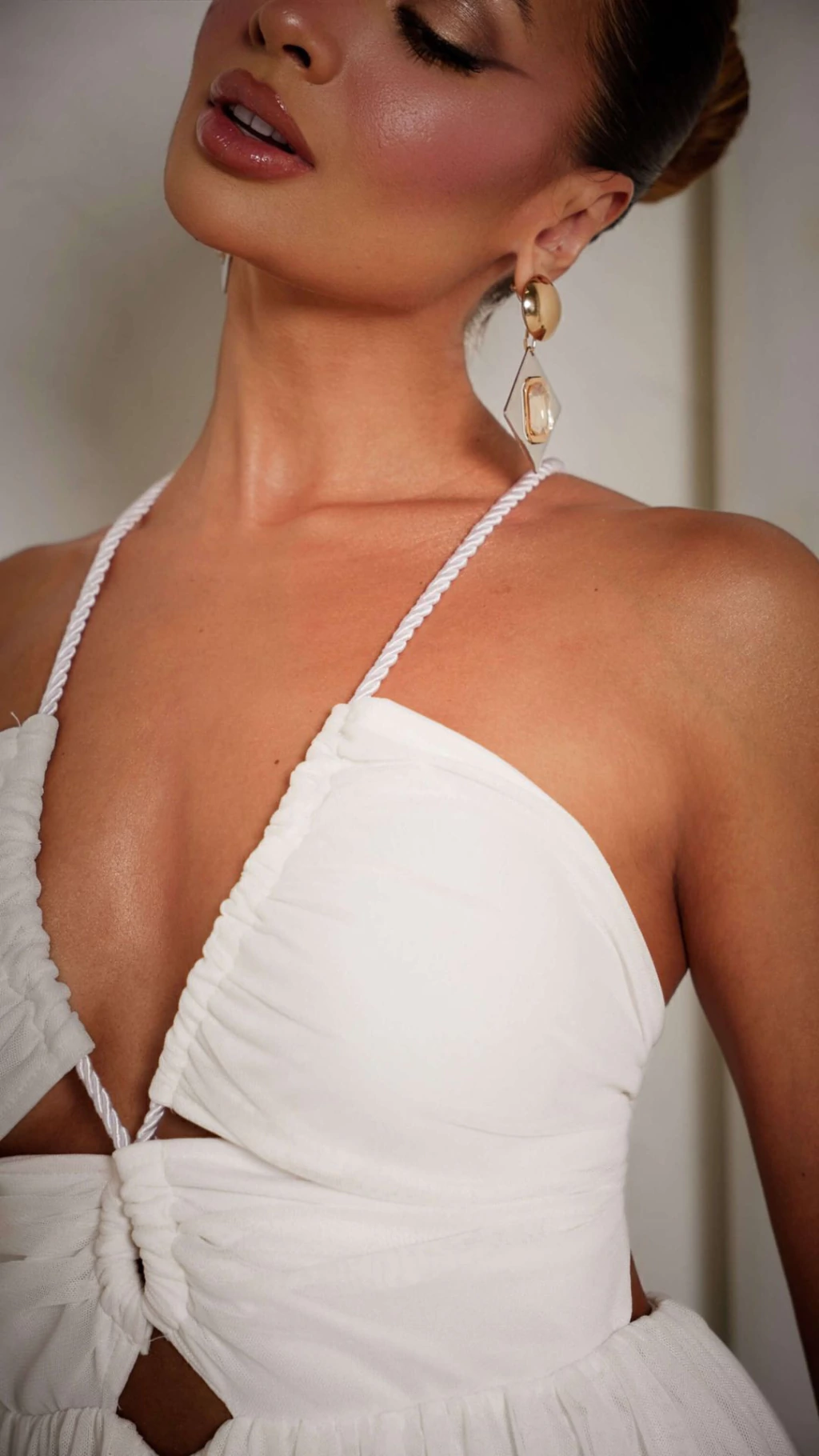 ✨ Destaques: - Tule poliamida premium para conforto e estilo - Recortes estratégicos que realçam o corpo - Detalhes em cordão acetinado e argolas elegantes - Perfeito para festas e eventos sofisticados